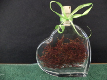 STIMMI DI ZAFFERANO PURISSIMO IN AMPOLLA DI VETRO A FORMA DI CUORE E TAPPO IN SUGHERO .